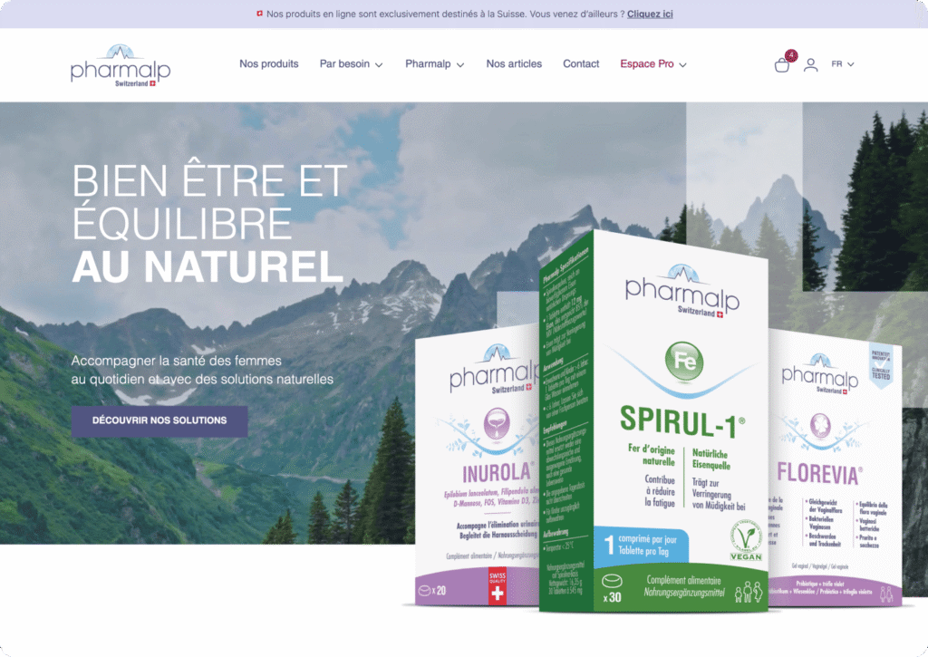 Jusqu’alors très présent en points de vente physiques (pharmacies, magasins spécialisés, etc.), Pharmalp souhaitait renforcer sa présence en ligne et offrir une expérience d’achat directe et accessible, aussi bien aux clients particuliers qu’aux revendeurs tiers.